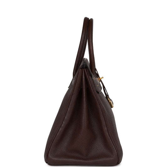 Vintage Hermes Birkin 35 Marron Fonce Fjord Gold Hardware