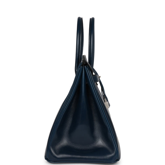 Hermes Birkin 35 Bleu De Prusse Box Calf Guilloch Palladium Hardware