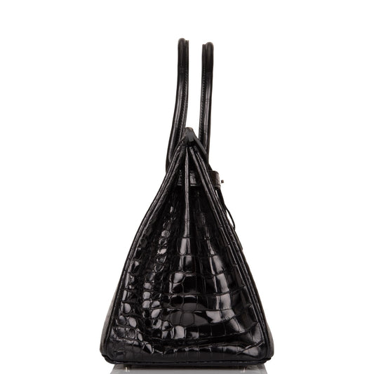 Hermes Birkin 35 Black Shiny Porosus Crocodile Palladium Hardware