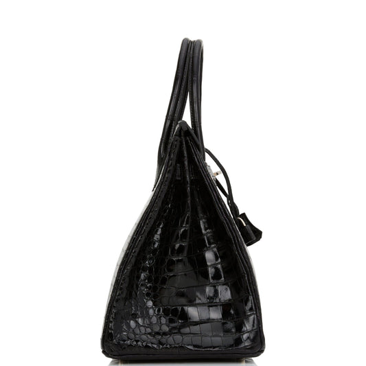 Hermes Birkin 35 Black Shiny Porosus Crocodile Palladium Hardware
