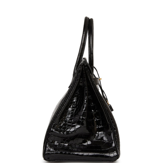 Hermes Birkin 35 Black Shiny Porosus Crocodile Gold Hardware