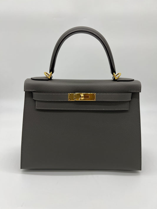 Hermes Kelly 28 Sellier Gris Meyer Epsom Gold Hardware