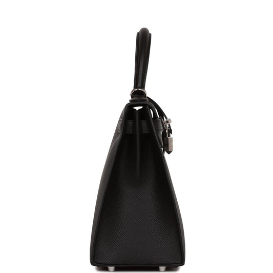 Hermes Kelly 28 Sellier Black Epsom Palladium Hardware