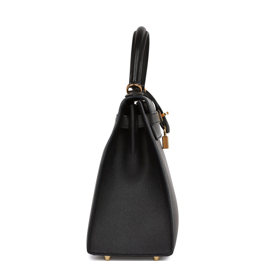 Hermes Kelly 28 Sellier Black Epsom Gold Hardware