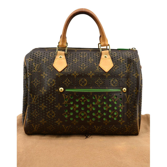 LOUIS VUITTON Speedy Monogram Perforated Satchel Bag Brown