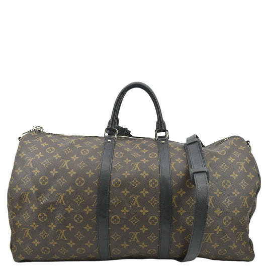 LOUIS VUITTON Keepall Bandouliere 55 Monogram Macassar Travel Bag Brown