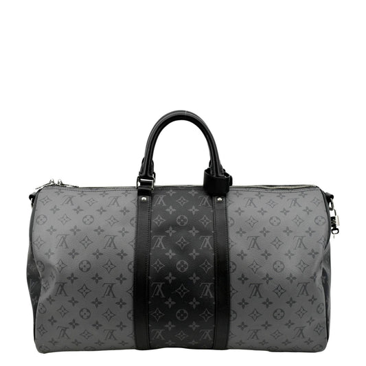 LOUIS VUITTON Keepall 50 Bandouliere Monogram Eclipse Travel Bag Black