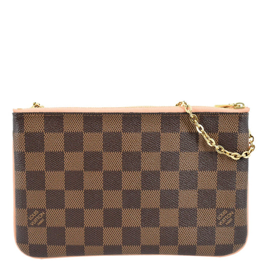 LOUIS VUITTON Double Zip Pochette Damier Ebene Crossbody Bag Rose Ballerine