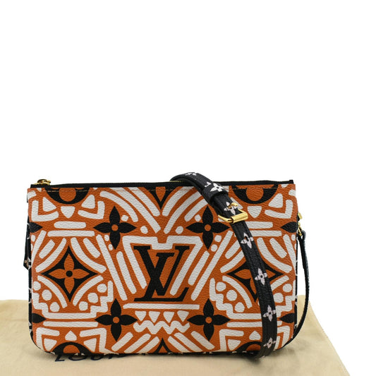 LOUIS VUITTON Double Zip Pochette Crafty Monogram Giant Crossbody Bag Creme Caramel