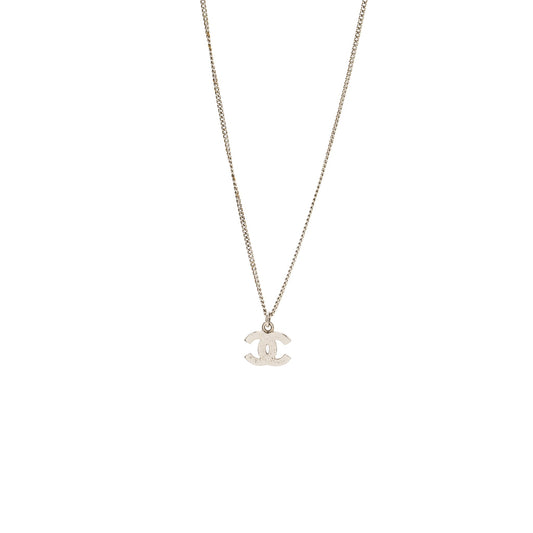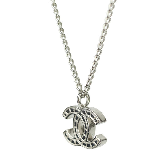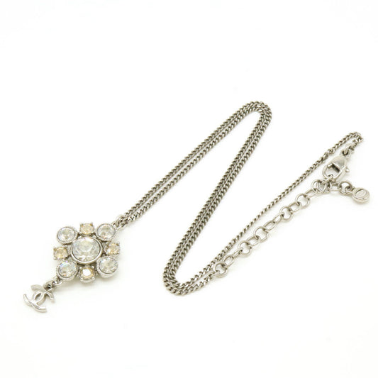 Chanel small model cc logo crystal necklace silver tone