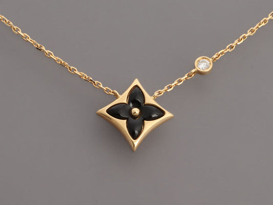 Louis Vuitton 18K Yellow Gold Onyx and Diamond Color Blossom BB Star Pendant Necklace