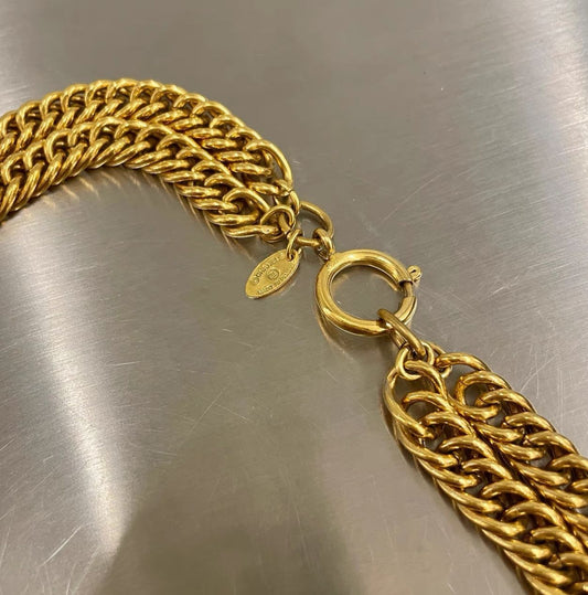 Chanel Vintage 24K Gold Plated Gold Lava CC Pendant Necklace