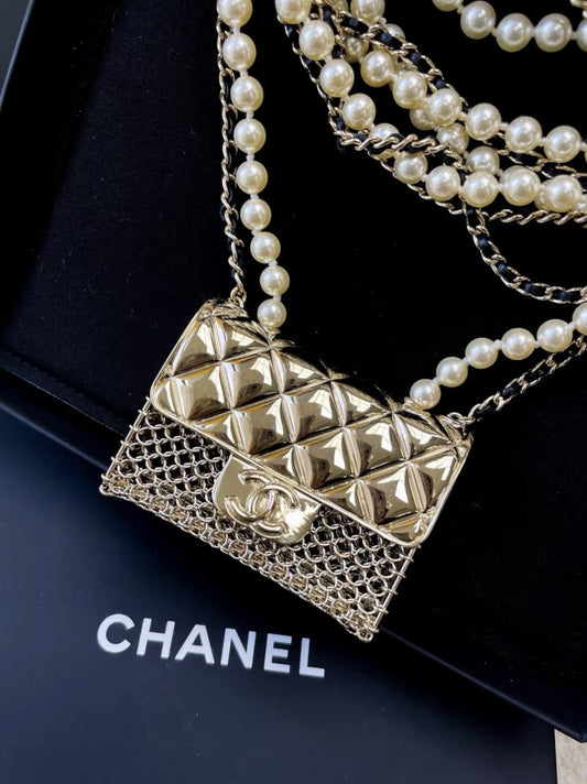 CHANEL 21S RUNWAY MICRO BAG & PEARLS LONG NECKLACE