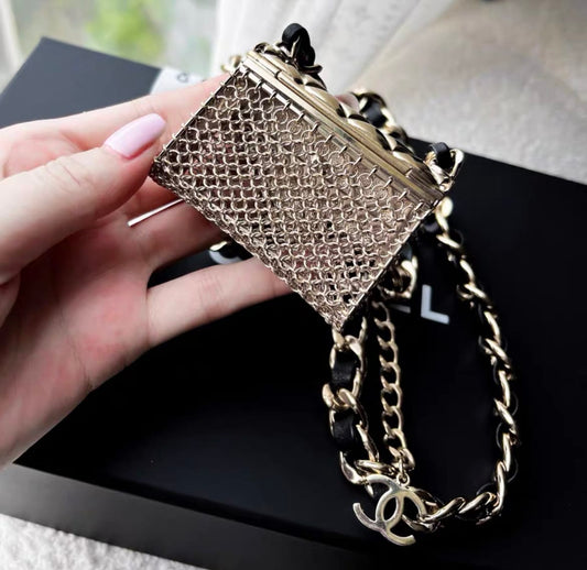 Chanel Purple and Black Tweed Heart Locket Necklace