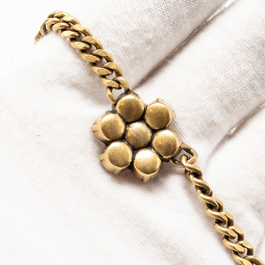 Gucci Crystal Double G Necklace Metal Aged Gold