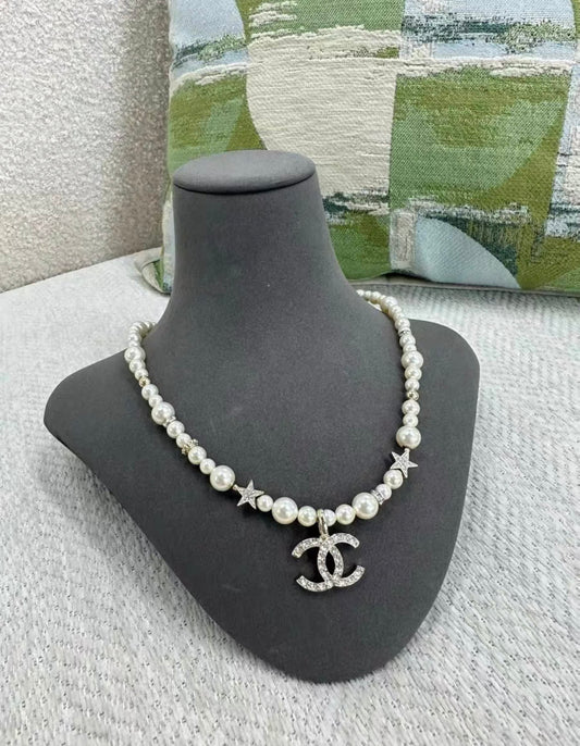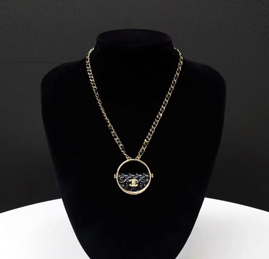 Chanel CC Pearl Leather Bag Pendant Necklace