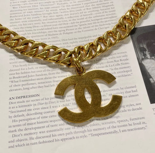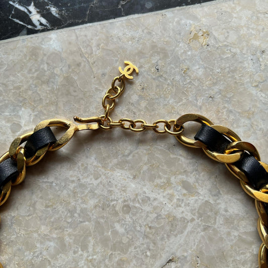 Rare Chanel 95P Black Gold Leather Chain Necklace
