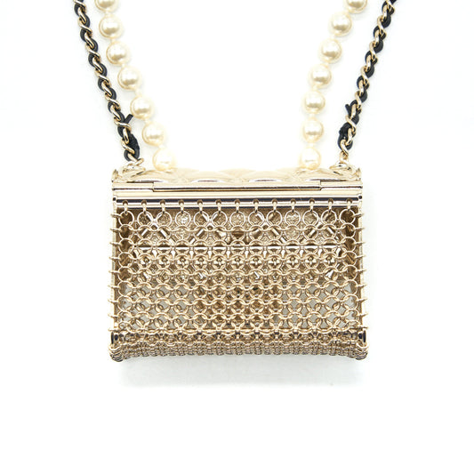 Chanel Pearl Flap Bag Pendant Necklace Light Gold Hardware