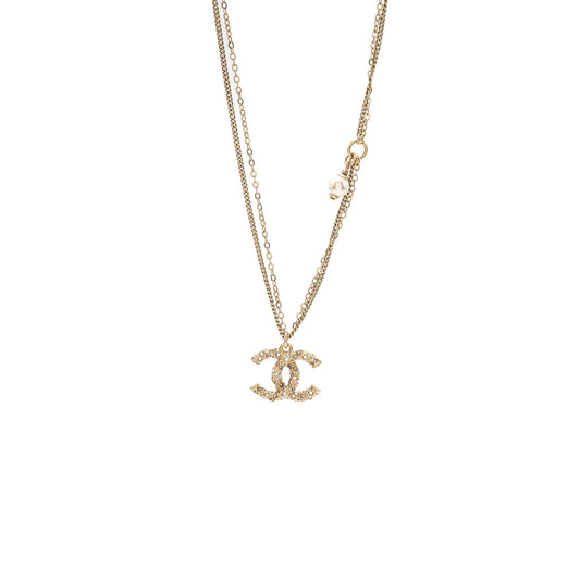 Chanel Long Necklace Pearl/CC Logo Crystal Gold Tone
