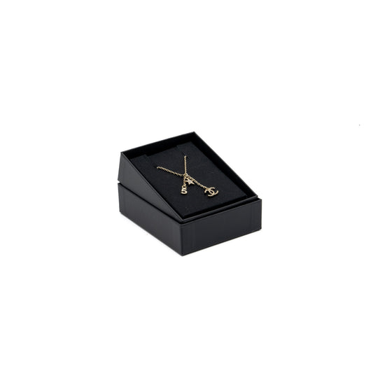 Chanel No.5/Star/CC Logo Dropped Crystal Necklace Light Gold Tone