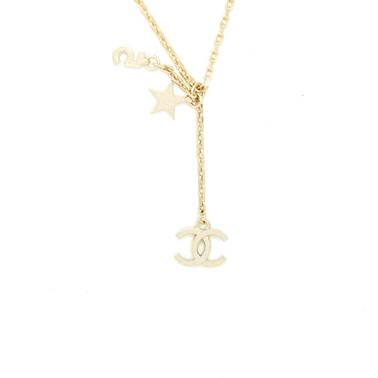 Chanel No.5/CC Logo/Star Necklace Light Gold Tone