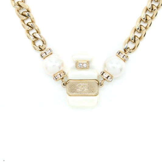 Chanel No.5 Perfume Bottle Chocker/ Necklace Crystal/Pearl Light Gold Tone