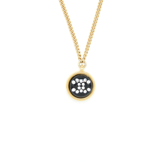 Chanel Detailed CC Logo Necklace Crystal Dark Grey Tone