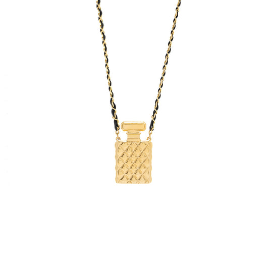 Chanel Coco Crush Necklace Quilted Motif Beige Gold