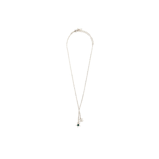 Chanel CC logo/Star Drop Necklace Crystal/Pearl/Silver Tone