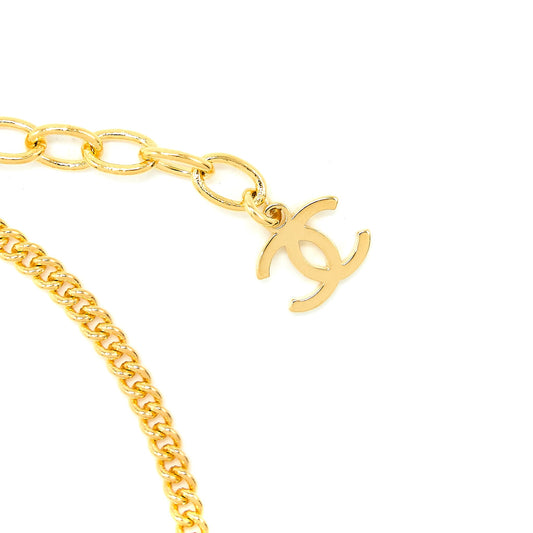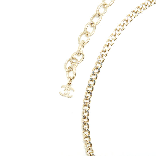 Chanel Giant CC Logo Necklace Leather Chain Multicolour Light Gold Tone