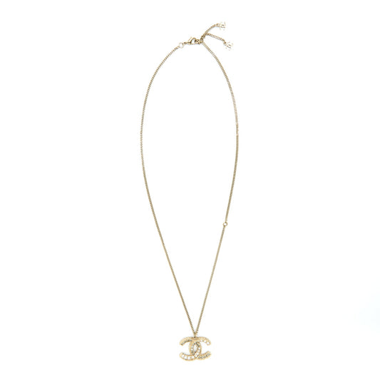 Chanel CC Logo With Crystal Necklace Light Gold Tone