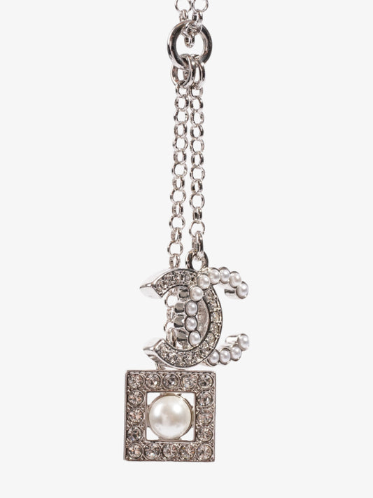 Chanel CC Pearl Square Necklace Silver Base Metal