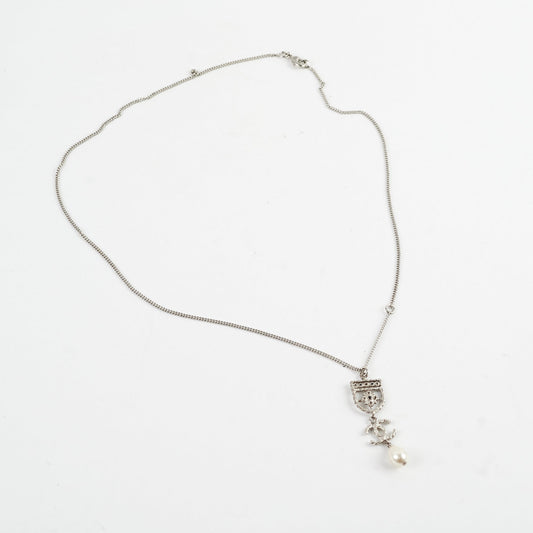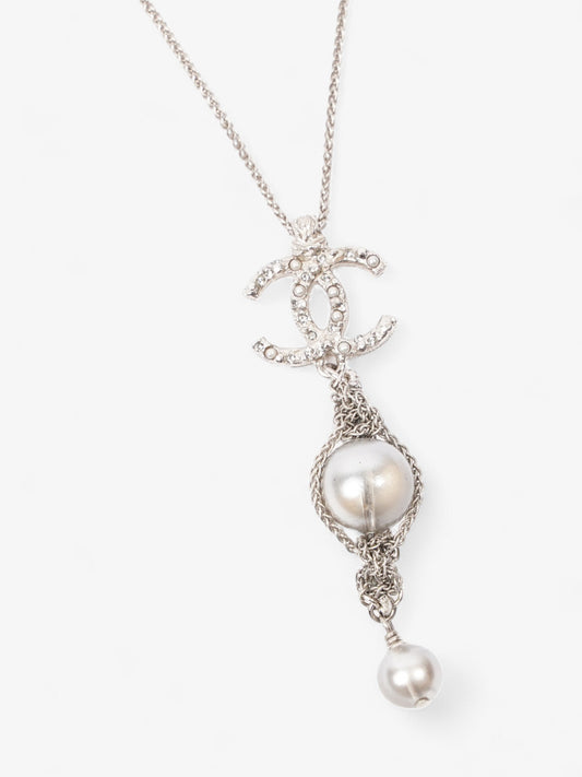 Chanel CC Pearl Drop Necklace Silver Silver Sterling
