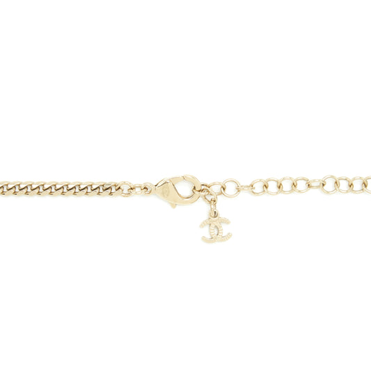 Chanel CC Gold Tone Metal Pearl Necklace Gold Hardware