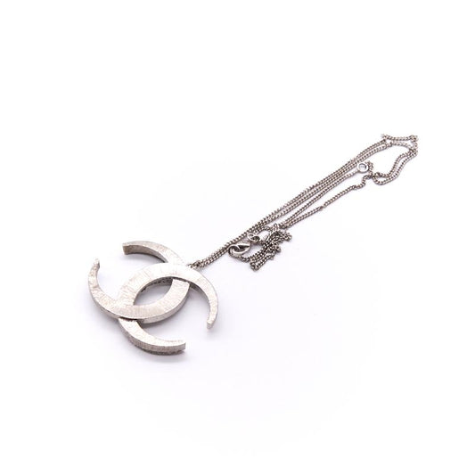 Chanel CC Crystal Silver Tone Pendant Necklace
