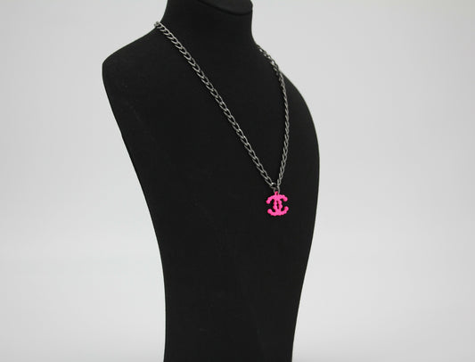 Chanel Vintage 04A Resin Fluorescent Pink CC Necklace