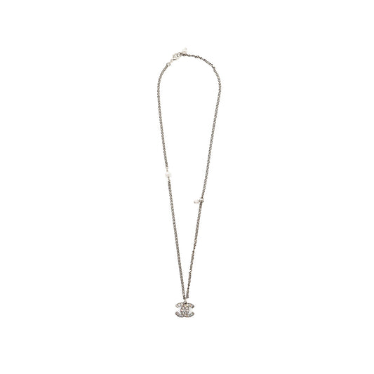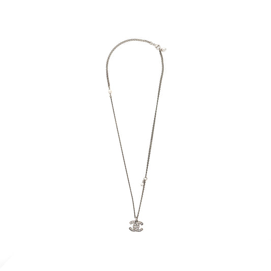 Chanel CC Logo Necklace Crystal/ Pearl Ruthenium Hardware