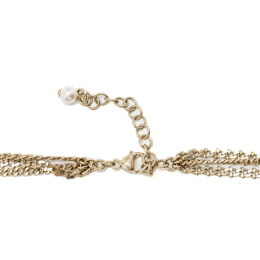Chanel CC Logo Long Necklace with pearl light gold tone