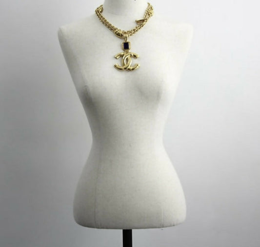 Chanel Vintage 94A Gripoix Blue Gold-plated Necklace