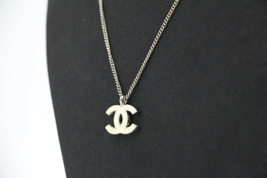 Chanel 10V Rhinestone Silver CC Mark Necklace