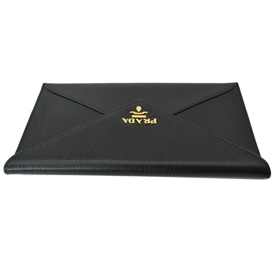 PRADA Envelope Leather Clutch Wallet Black