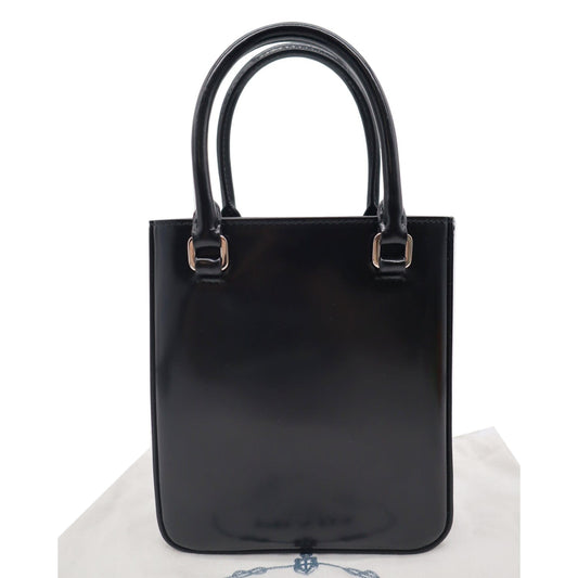 PRADA Small Brushed Leather Tote Shoulder Bag Black