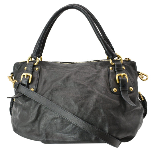 PRADA Flou Large Leather Shoulder Bag Black