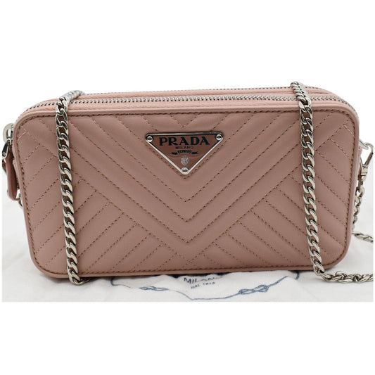 PRADA Nappa Mini Impunture Bandoliera Chain Leather Crossbody Bag Orchidea