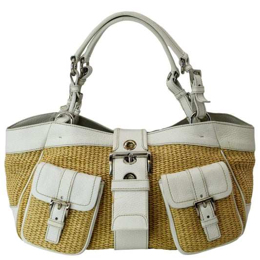 PRADA Paglia Vitello Daino Naturale Leather Satchel Bag Natural