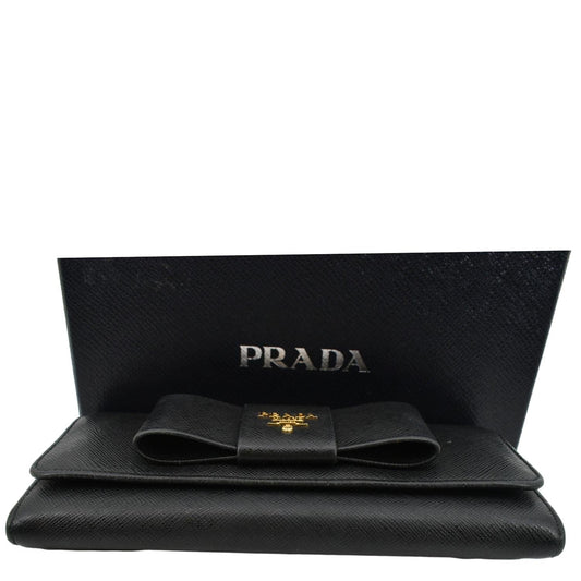 PRADA Continental Flap Saffiano Leather Long Wallet Black