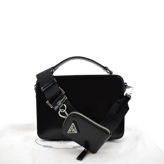 PRADA Brique Patent Leather Crossbody Bag Black 2VH069