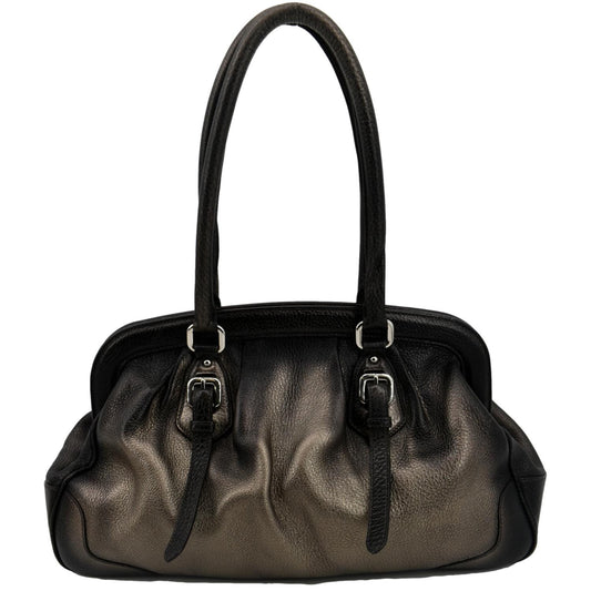 PRADA Gradient Antik Frame Leather Satchel Bag Bronze Metallic