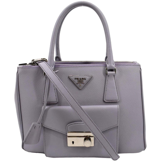 PRADA Front Pocket Double Zip Saffiano Leather Tote Shoulder Bag Light Purple
