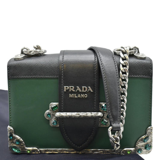 PRADA Cahier Swarovski Crystals Leather Shoulder Bag Green